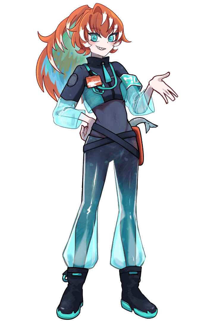 ホウボウ、カナガシラ、モミジザメ。赤い魚たちがモチーフ。制服はシナリオ指定のものをアレンジ。